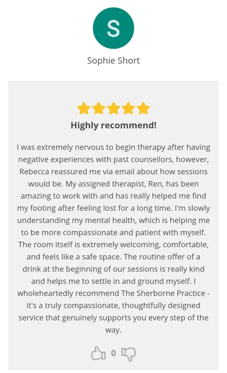 Thank you for considering The Sherborne Practice for your counselling needs. We’re here to support you on your journey to wellbeing, we recognise that it takes a lot to make this first step, and we are here to support you throughout your time with us.